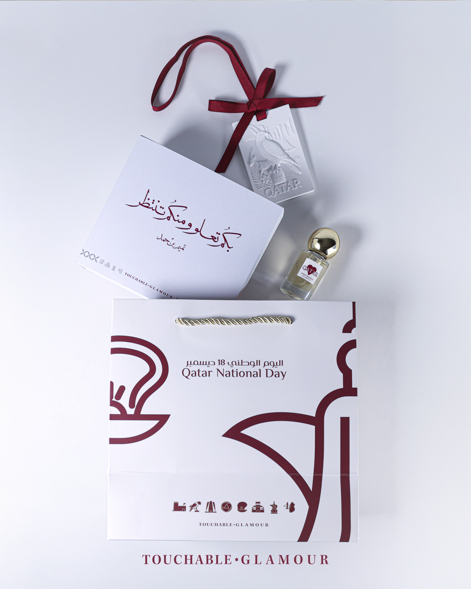 قطعة سيراميك فواحة مستوحاة من الرموز القطرية الأصيلة: الصقر، اللنج، السدرة، وأبراج الكورنيش. مصممة لتكون قطعة زينة...
